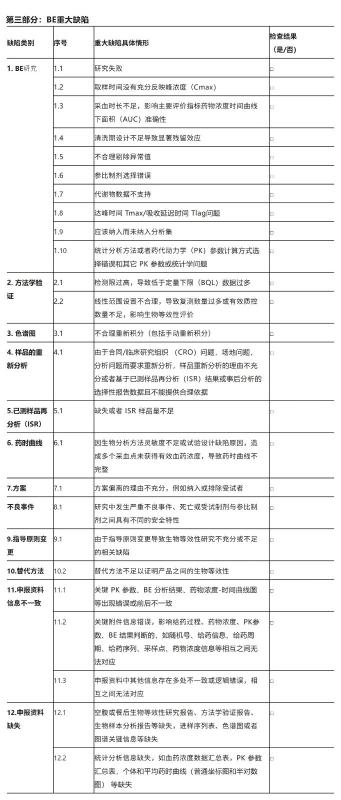 25年12月末,CDE发布了药学和BE的重大缺陷指导原则,明确在审评过程中如果遇到这些缺陷,将不再要求申请人补充资料,基于已有申报资料做出不予批准的决定,业内将其称为“退审清单”。
